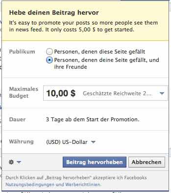 Tut man das nicht, so scheint es so zu sein, daß der Artikel nur noch denen angezeigt wird, die regelmäßig Kontakt zu deiner Seite haben. Wer einfach nur „gefällt mir“ geklickt hat und dann diene Seite nicht besucht oder was weiterverlinkt, der bekommt die neuen Sachen gar nicht mehr angezeigt.